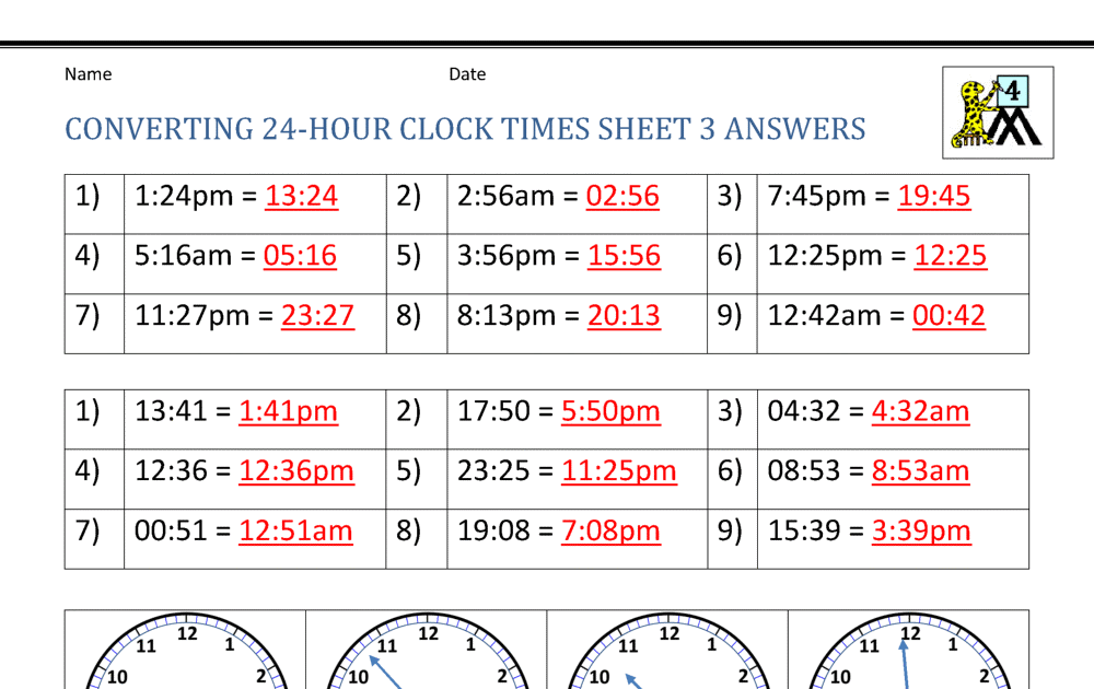 Source: www.math-salamanders.com The second set of sheets involve converting 24 hour clock times to 12 hour standard time. The last set of sheets involve both converting between 12 and 24 hour times and back.